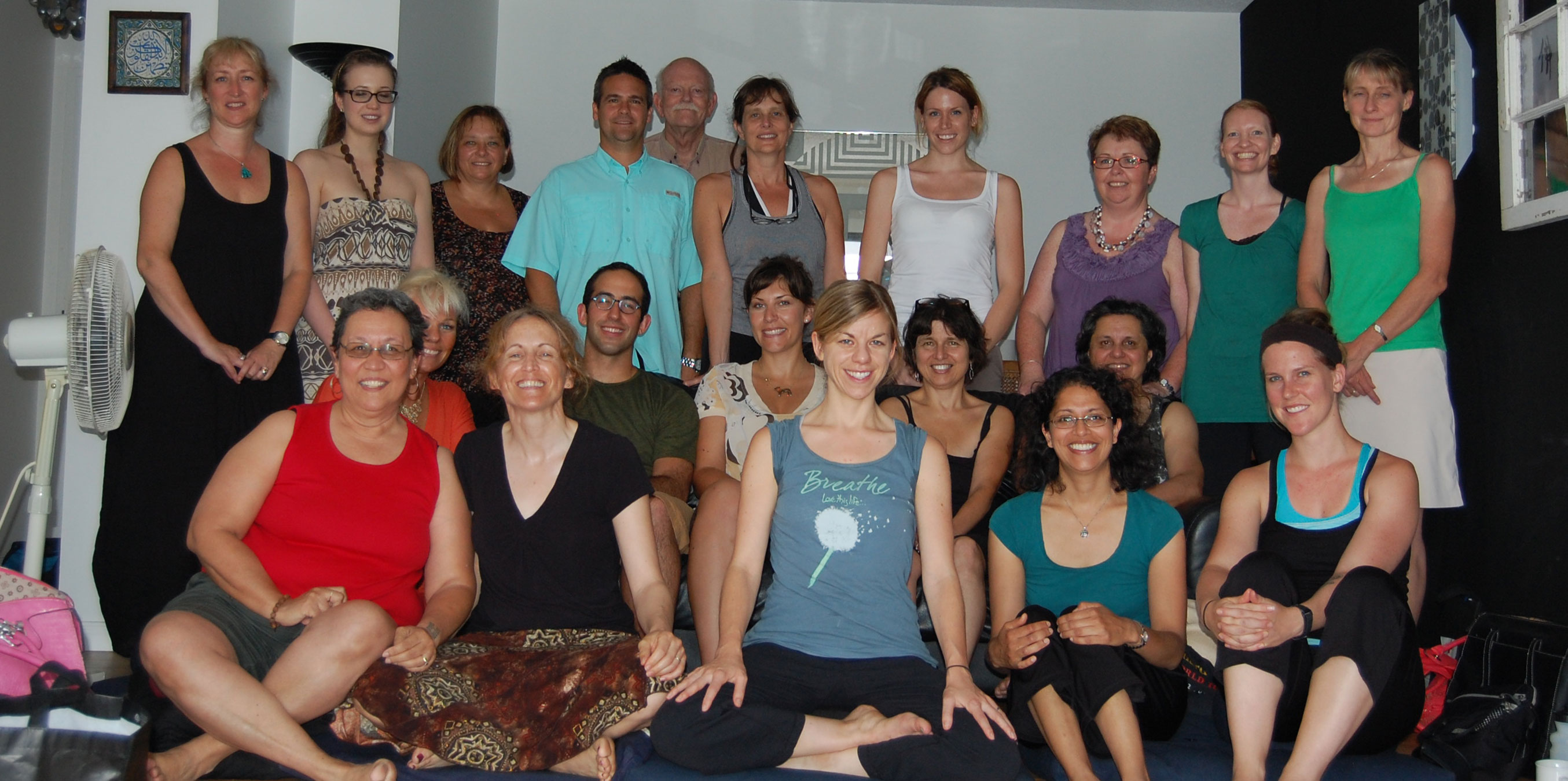 We are thrilled to introduce our new graduates from the 2012 Teacher Training Program in Foundations of Mindfulness. These amazing health care professionals, clinical psychology PhD candidates and medical students, and even an ethicist took part in the 8-week Mindfulness-Based Symptom Management program as participant-observers, wrote papers and reviews of the current literature and research, and completed the intensive weekend retreat with terrific courage and equanimity. It was particularly challenging as the air conditioning in the clinic broke down with little warning. The alternate venue we found provided all of us with ample practice as its air conditioning died, the replacement was inadequate, and the final one installed was only functional because of two powerful fans in the room. The temperature for the three days was brutal as the participants, coaches, and teachers practice extinguishing the desire for things to be different. We called this the inaugural session of Hot Mindfulness!